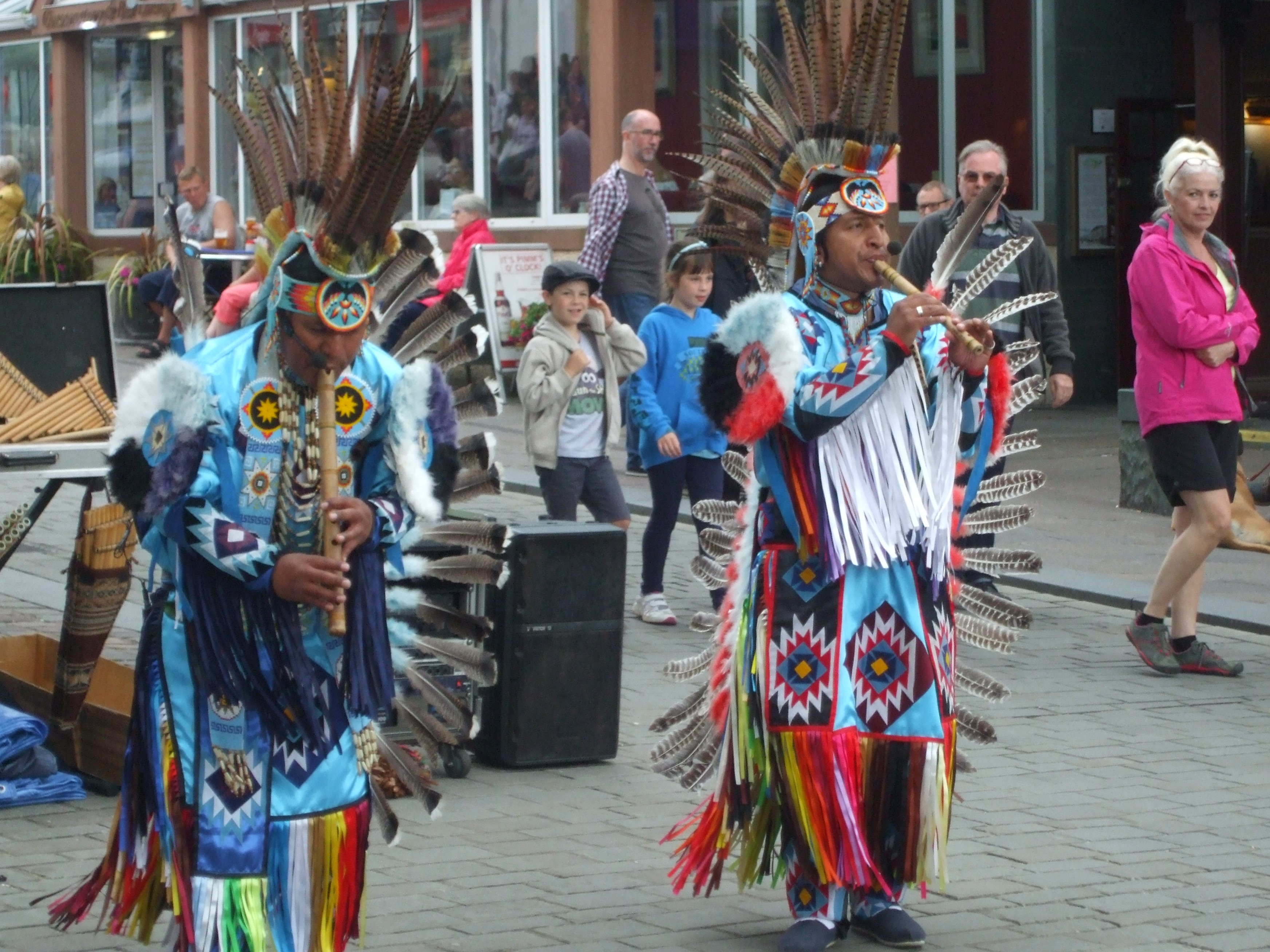 The usual pan -pipers we get over here are from South America – often Peru or other countries along the Andes. They do dress in their traditional costumes, too – which are similar to those of North American Indian tribes. I’ve seen pan pipers in many European countries. Their pan-pipe music is hauntingly beautifiul, but can be fast, too. Thank you again, PJ.