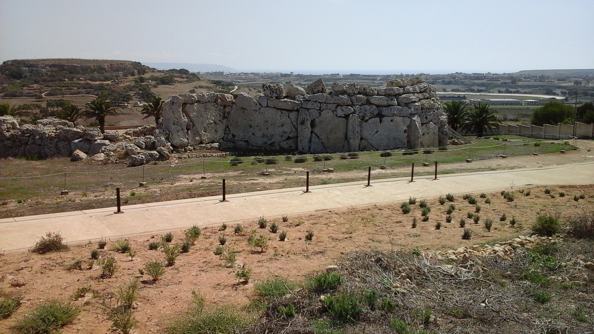 The huge megaliths of the outer wall were positioned alternately, one vertically and one upright, and the space between the outer and inner walls is filled with earth and rubble. It is thought that it was this that has given Ggantija the stability to survive 5,000 years.