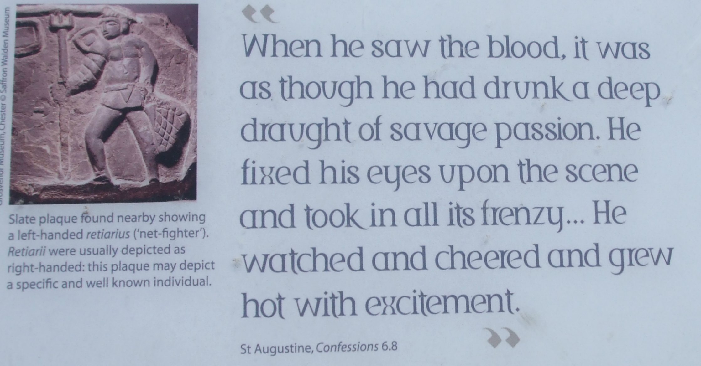 A shrine to the goddess, Nemesis, was discovered beside the north entrance and an altar dedicated to the centurion, Sextius Marciano. The walls of the arena were painted a reddish brown to give a marbled effect and the arena floor was covered in yellow sand to stop combatants from slipping. It could also be easily cleaned.