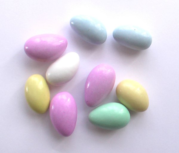 Jordan almonds – a form of dragees. Photographer: Alex Kasperavicius. Public Domain.