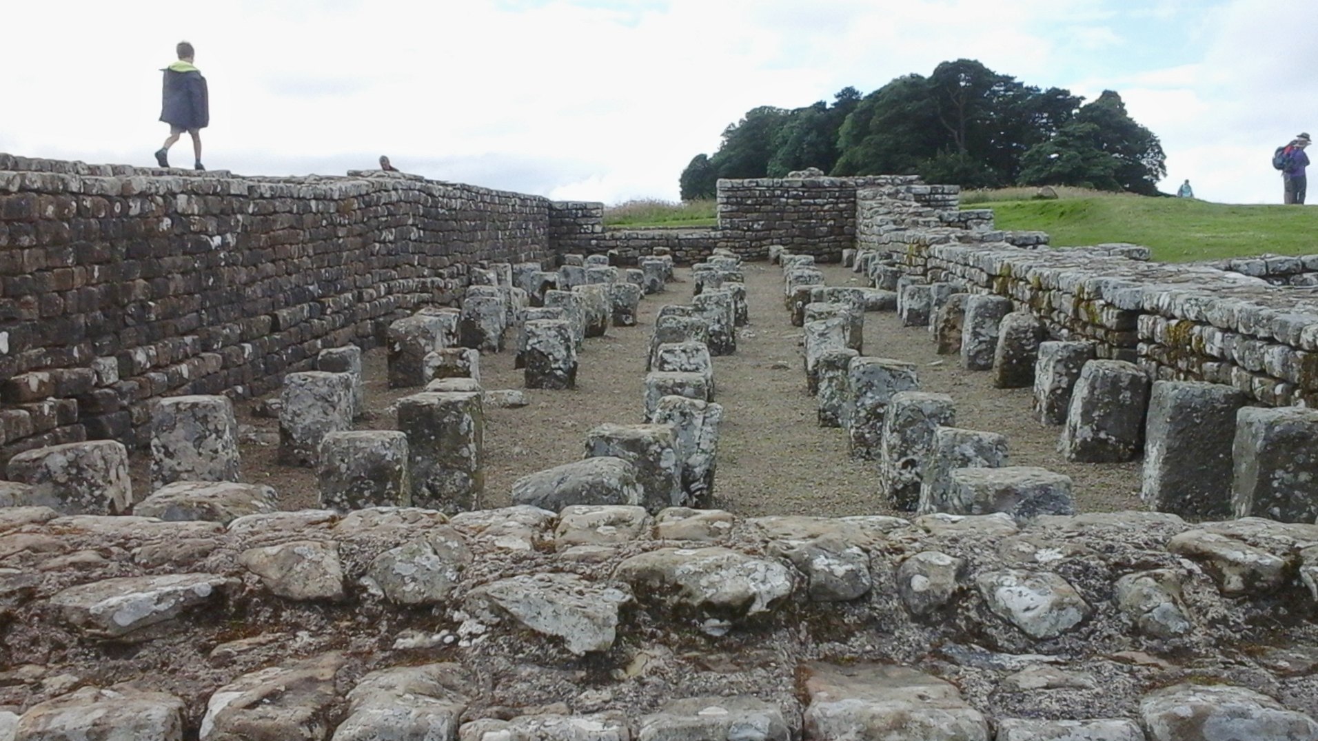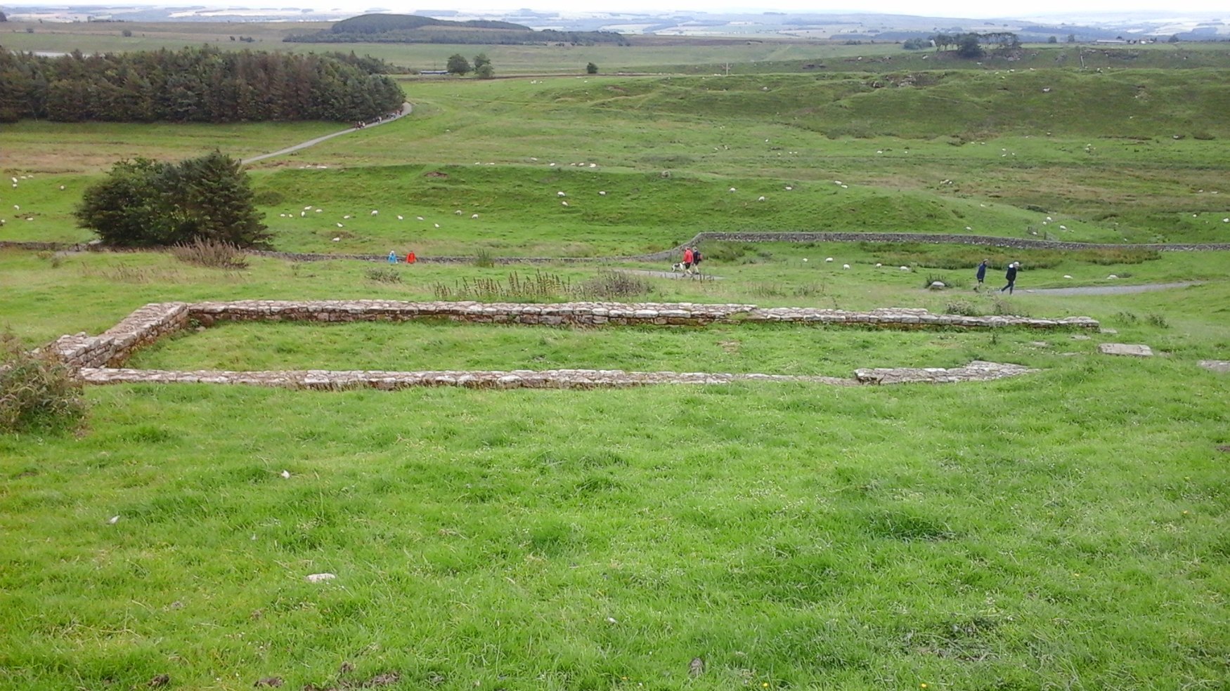 Houseteads has the usual, playing card shape of all Roman forts, its northern side lying along the Wall itself. To the south are the ruins of the vicus. During excavations there in 1932, two skeletons were found beneath a newly laid floor. One, a man, had a sword still embedded in the ribs. The cause of death of the woman with him is unknown. Needless to say, the house has since been called the ‘Murder House’.