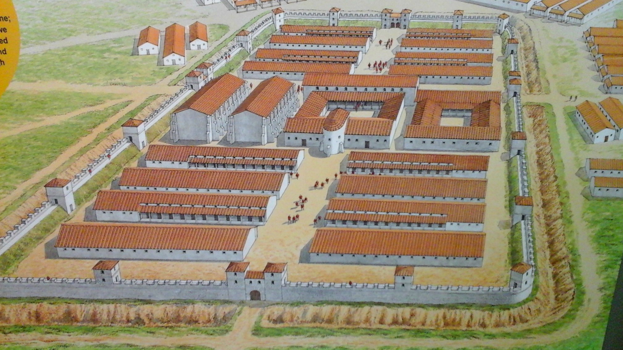 Either side of this important central area were the soldiers’ barracks, the stables and workshops. My ‘header’ image is an artist’s impression, from an information board at the site, of the outside of a barracks block. This is what they look like today: