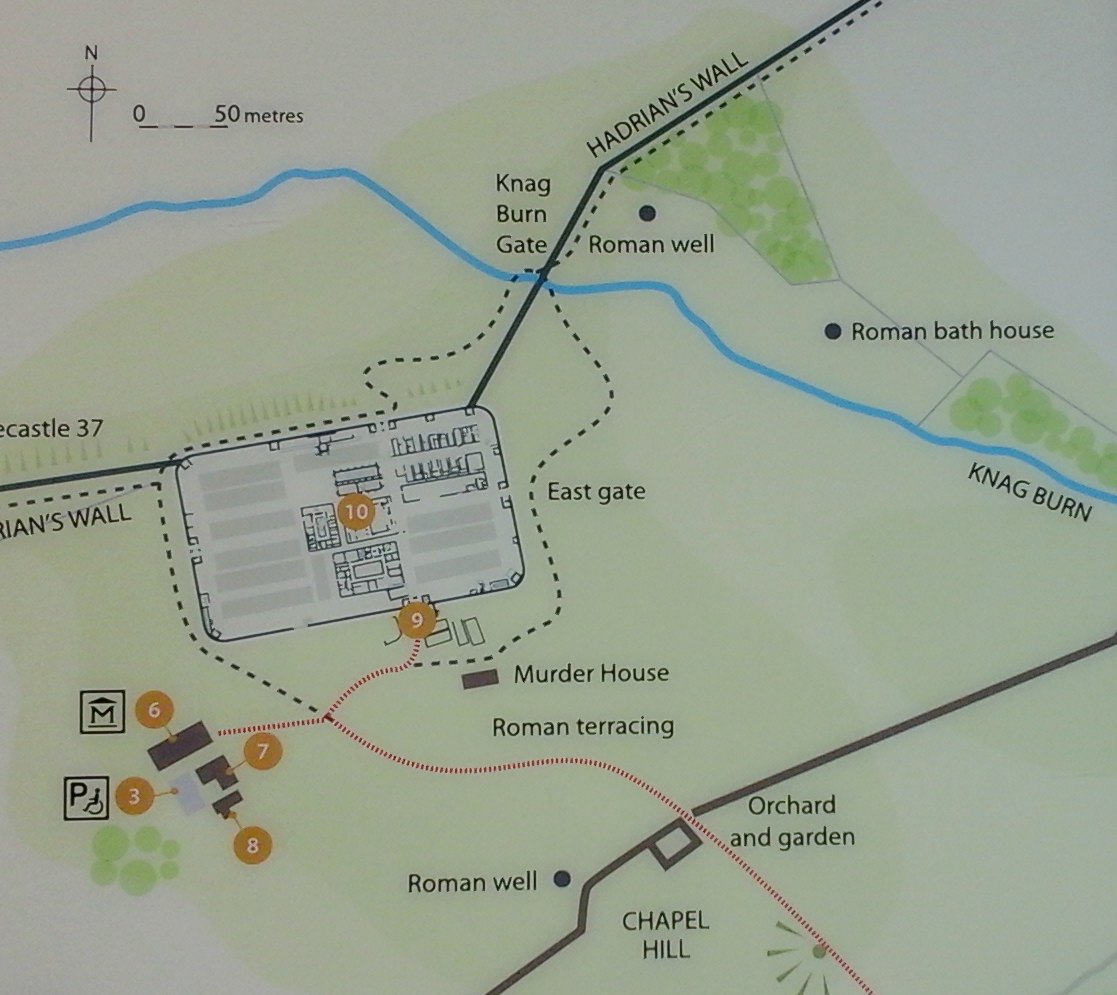 - All images, other than two from Wikimedia and my own photos are from information boards around the Housesteads site. Information from the same boards and a variety of booklets form the site.