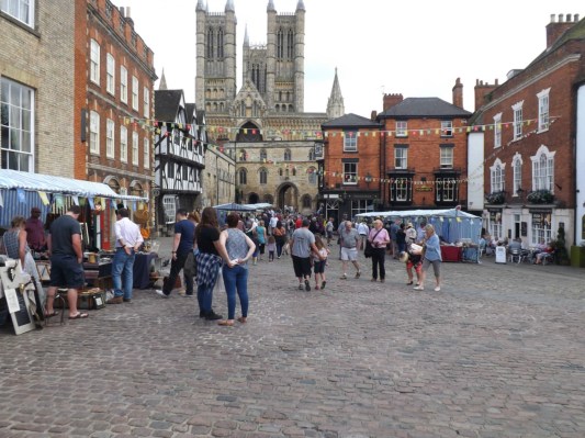 Market stalls outside castle gate