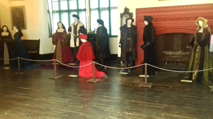 Costumes from Wolf Hall displayed in the Upper Great Chamber