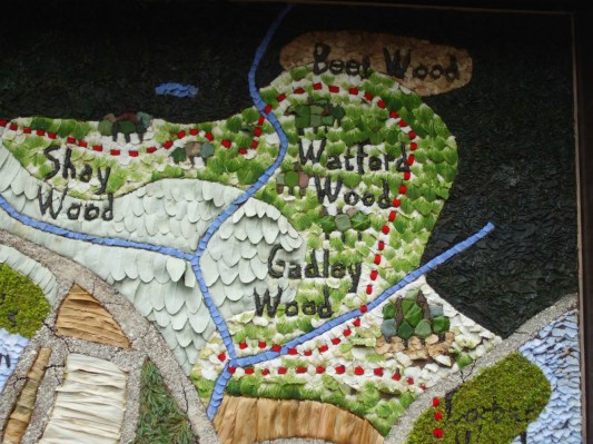 Close up of map theme on Higher Buxton Well