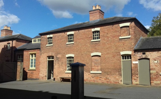 Wash house(open door) from the men’s work yard. Markings on the ground show where a wall would have divided where the men’s area ended so women could reach the washouse without contact