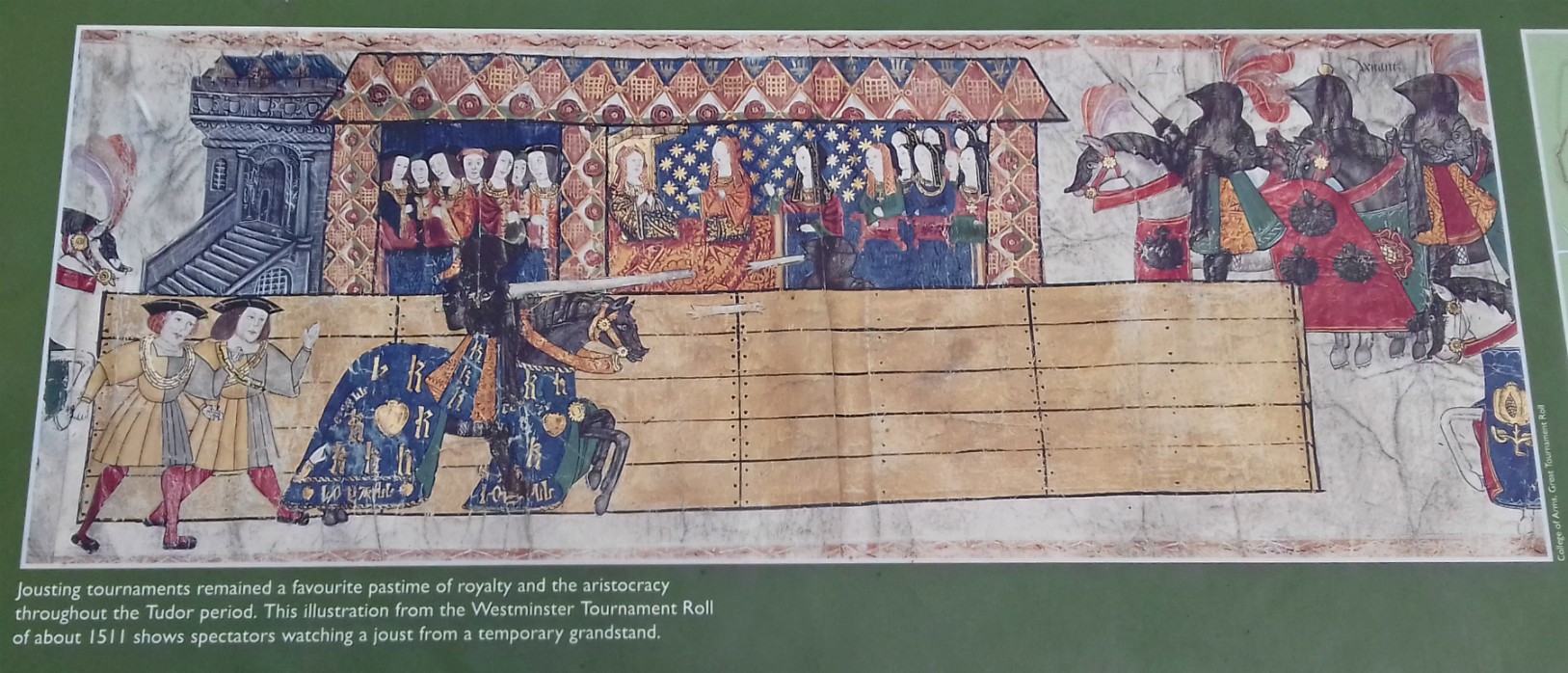 The flat surface of the dam built to hold back the mere is likely to have have been used as a tiltyard – a place where jousting tournaments took place – as far back as the 13th century. Edward I attended such an event in 1279, along with 100 knights and their ladies. In the late 16th century, during Elizabeth I’s reign, the dam at Kenilworth was walled both sides in stone and specifically called a tiltyard. By then, tournaments could be viewed from the Gallery Tower, which stood near to where the ticket office is today. The last jousting tournaments in England were held a year before the death of James I in 1624