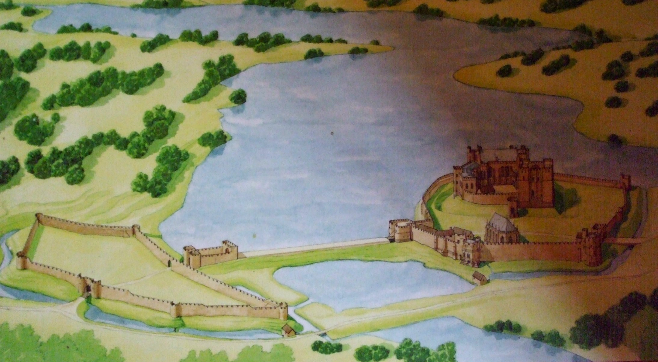 The Lancastrian king, Henry V (reign 1413-22) even built a retreat called the ‘Pleasance in the Marsh’ in celebration of his famous victory at Agincourt. The Pleasance was a luxurious, moated residence at the far north-western side of the lake, hidden from the castle by a spur. As the name Pleasance suggests, the mansion was for pleasure and relaxation. According to a castle surveyor of 1563, ‘kings would  go in a boat out of the castle to banquet there’. Henry VII also visited the castle often with his queen, and in the 149os he had a tennis court built.
