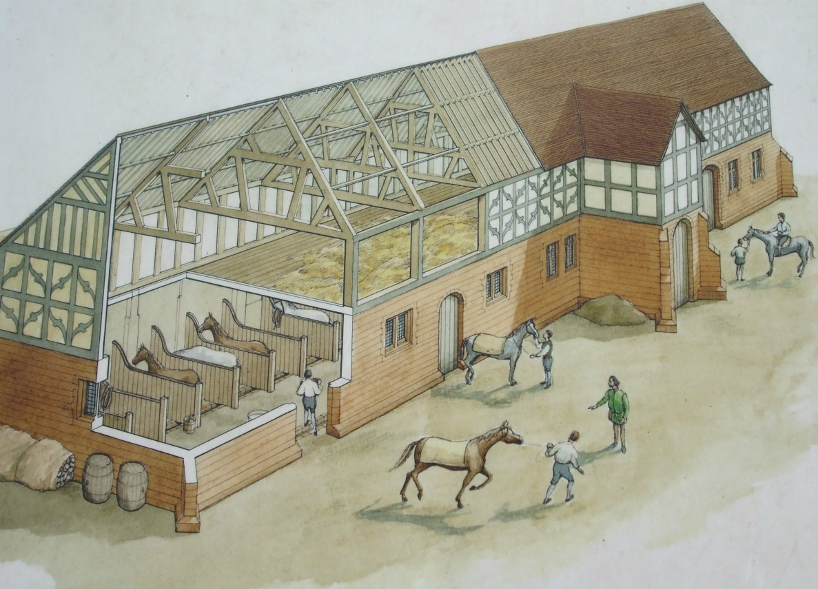 A cut away reconstruction showing the possible arrangement of the stables in the 16th century.
