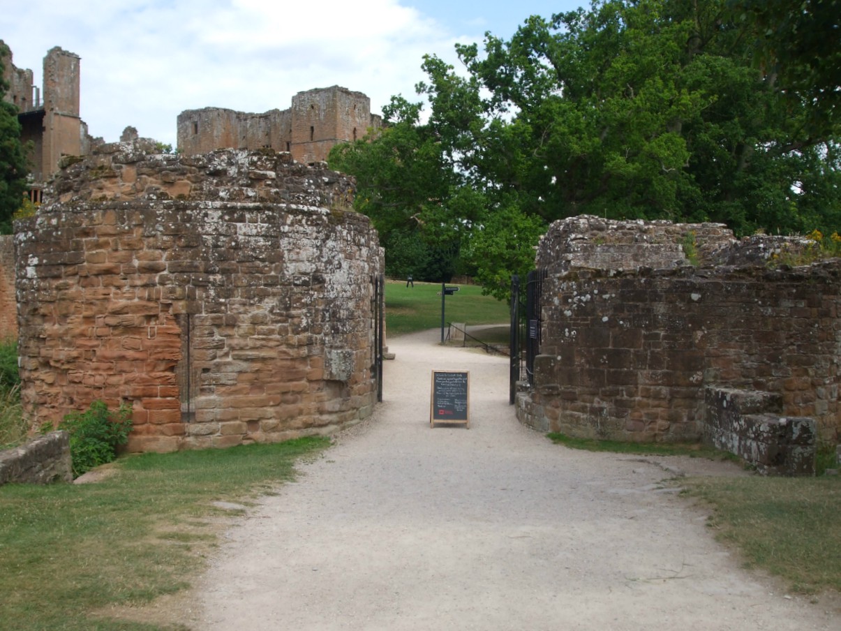 From the ticket office and shop, the castle is approached along the Tiltyard Dam, the long path up to the ruins of Mortimer’s Tower, as shown on the plan above. Once inside the Outer Curtain Wall, to the  right can be seen the former Stables, now the Cafe and Exhibition Centre, an important place for all visitors when in need of a drink and/or a snack, or a lunchtime meal, especially if you intend to stay for the day, as when events are held. It is also a good idea to view the introductory exhibition set up inside before heading off to investigate the various parts of the castle.