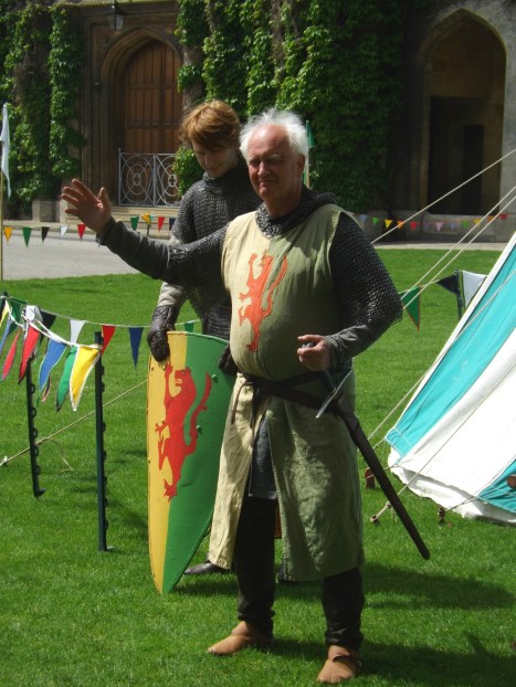 The weather was pleasant with bursts of sunshine, and everyone seemed to be having a great time. We got there around 10.30 am and had a walk round the bailey, generally ‘having a look’ at the encampment of the reenactors and various items and activities going on before the first part of the battle began. These are a few photos from around the camp. Lots of knights were about at this point, too: