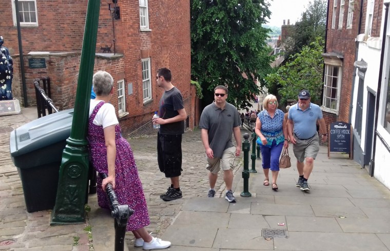 The knights are placed in both uphill and downhill locations, which – if the task is to be completed in one go – requires a nice, invigorating walk up Steep Hill. In fact, a few of the knights are along Steep Hill. This hill may not look too steep in photos, but it is a fairly lengthy hill and I’ve seen lots of people stopping, out of breath and in need of a rest.