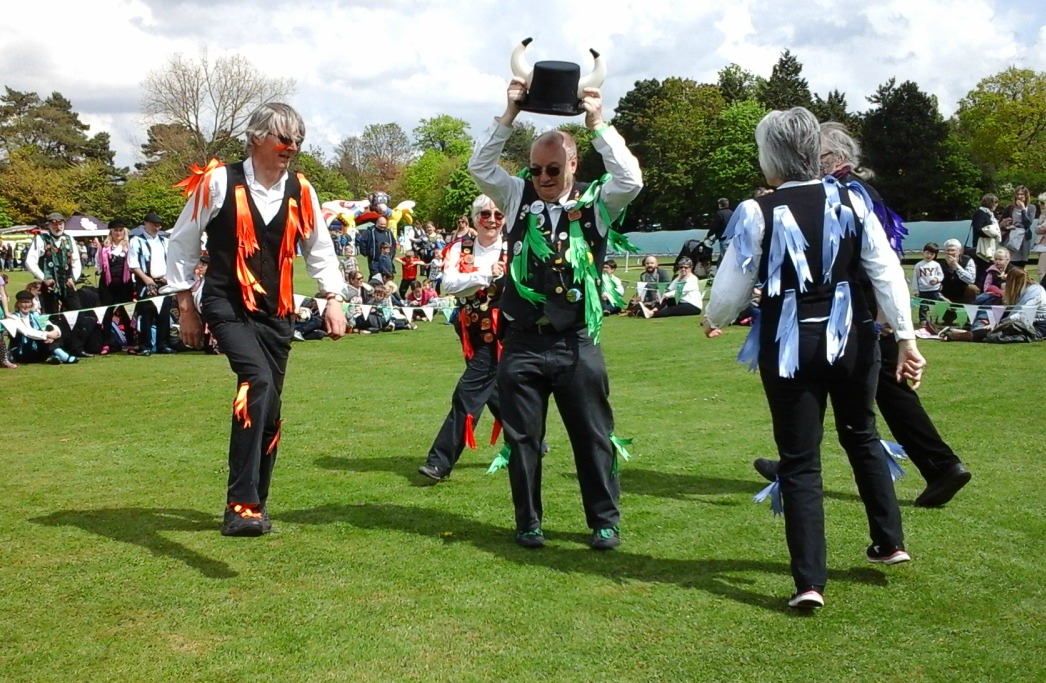 Straight after the crowning of the May Queen came the Morris dancing, performed by the same troop who were here last year – Rattlejag Morris. As it says on their website, they are a mixed troop, formed in 2002, who use recently collected material from East Yorkshire as well as their own material from local research into dancing in Nottinghamshire and Lincolnshire.Their aim is to revive and develop their own locally based dance tradition. The troop performs broom dances, bacca pipe dances and sword dances, as well as many others unique to their group, and are continually developing new dances. On this occasion we didn’t video anything, but here are a few photos…
