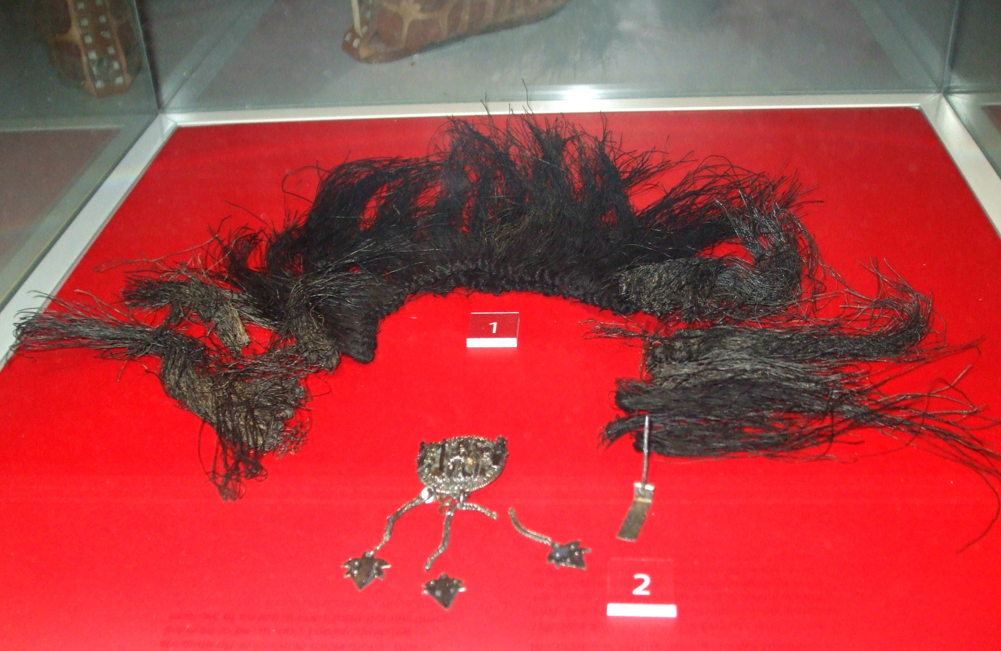 This was made from a type of moss that grows nearby, simply referred to as ‘hair moss’. It is believed these crests would have been in several colours, but the only one I found on Wikipedia was red: